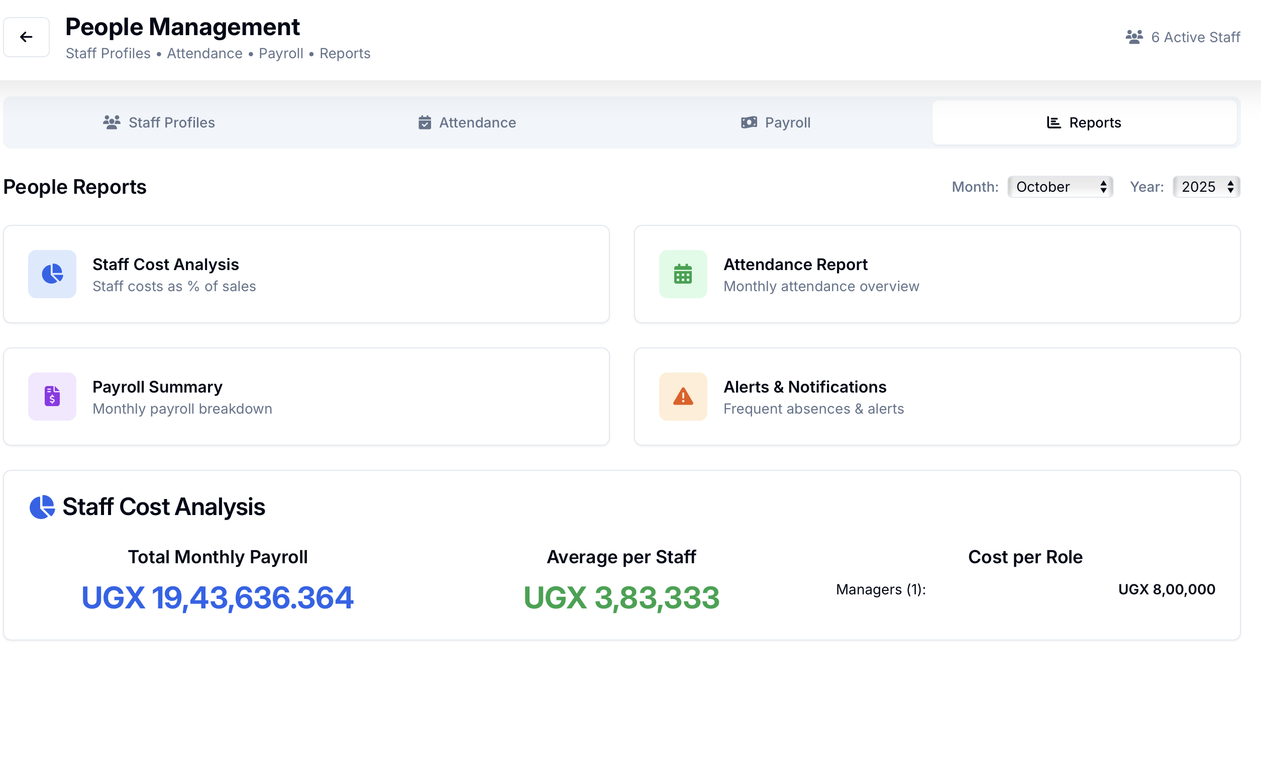 Manage all employee records and process payroll for staff in each outlet—keeping salaries and HR data organized across stores / branches.